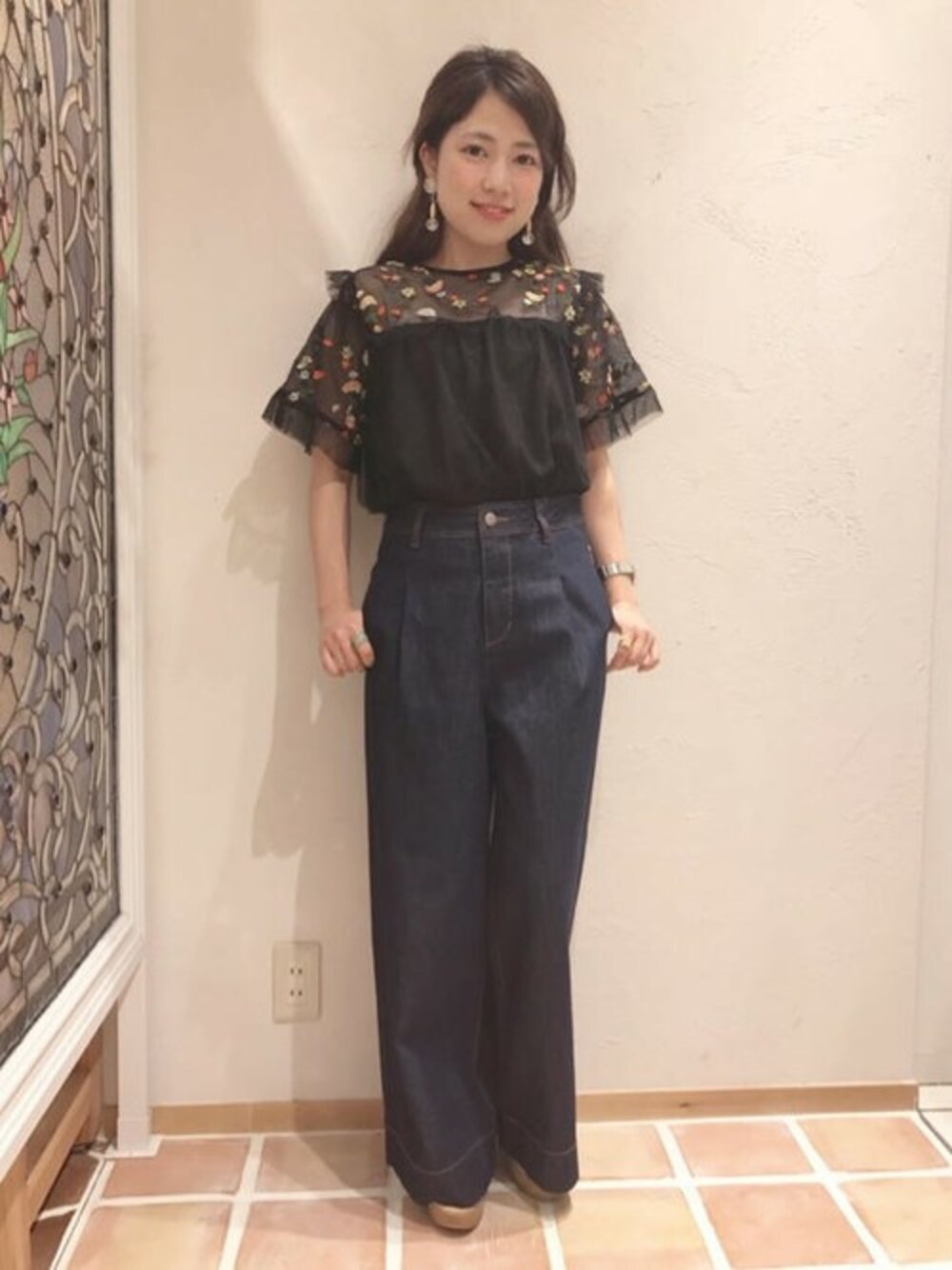 flower(flower )のTシャツ/カットソー「crazy flower emb top~クレイジーフラワーエンブロイダリートップ」を使ったコーディネート