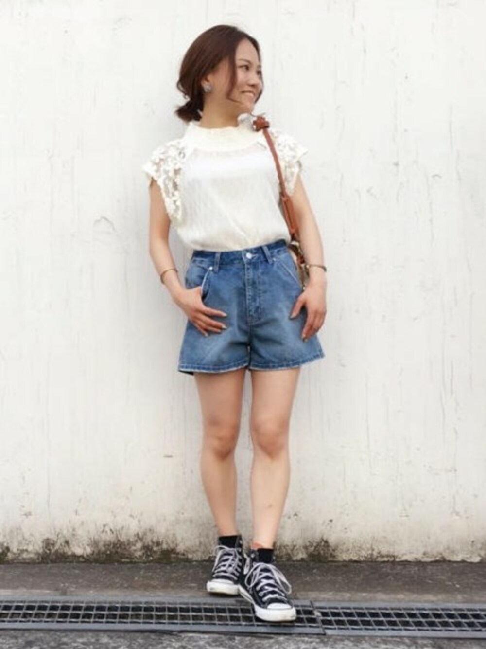 flower(flower )のシャツ/ブラウス「shirring lace blouse~シャーリングレースブラウス」を使ったコーディネート