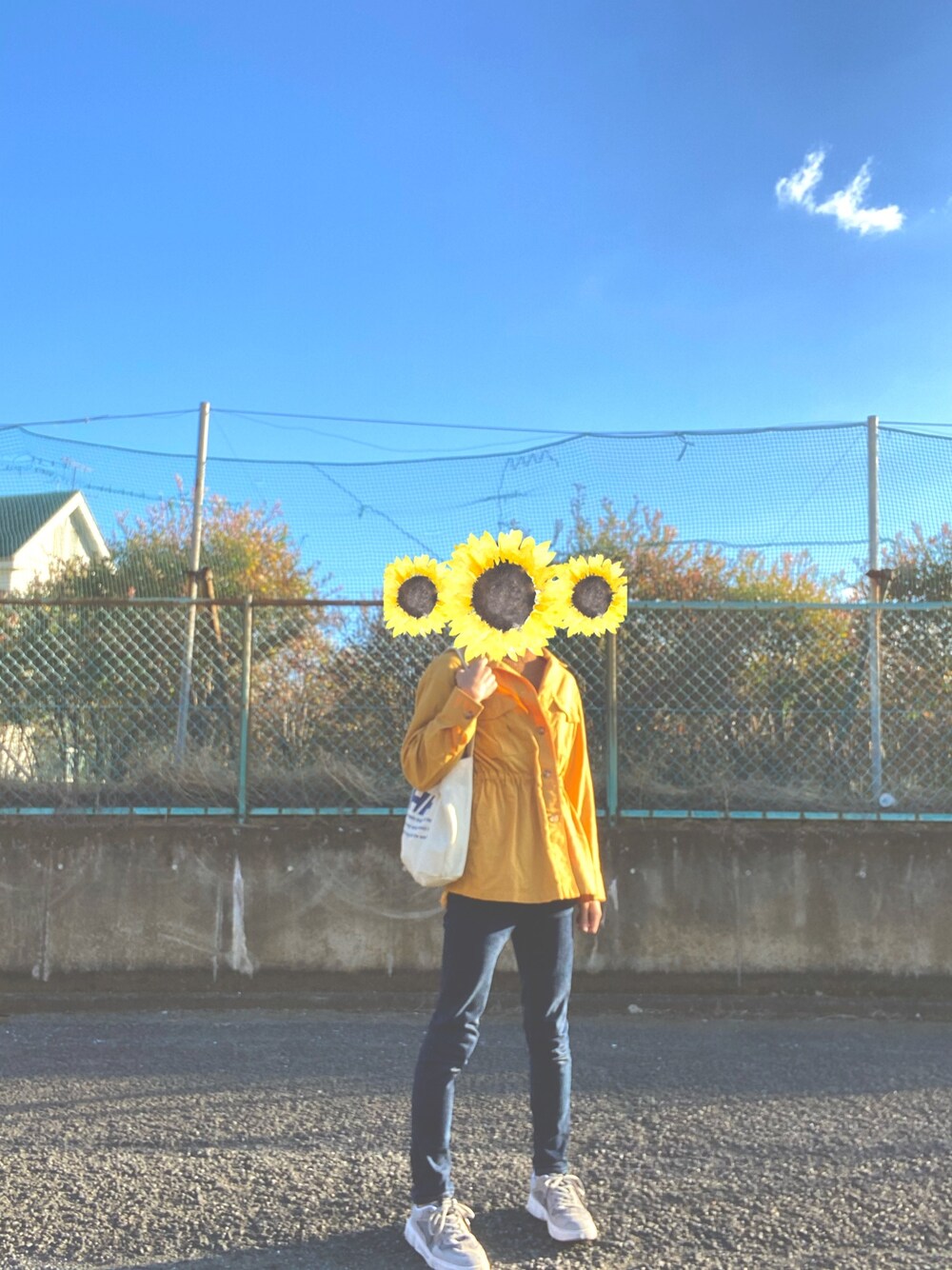 いつも見に来てくれてありがとうございます🐶 めったに履かないけどたまにはデニムもいい感じ🙆♀️ 山吹色のジャケットで一気に秋感出て、かわいい🧡 靴は韓国の通販サイトで買ったものです!