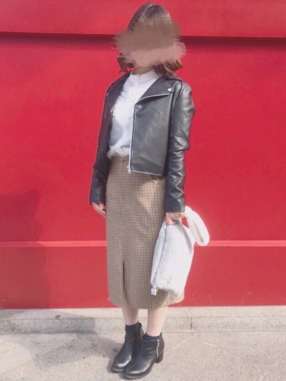 m*のライダースジャケット「【広瀬すずさんCM着用】 フェイクレザーライダースジャケット」を使ったコーディネート