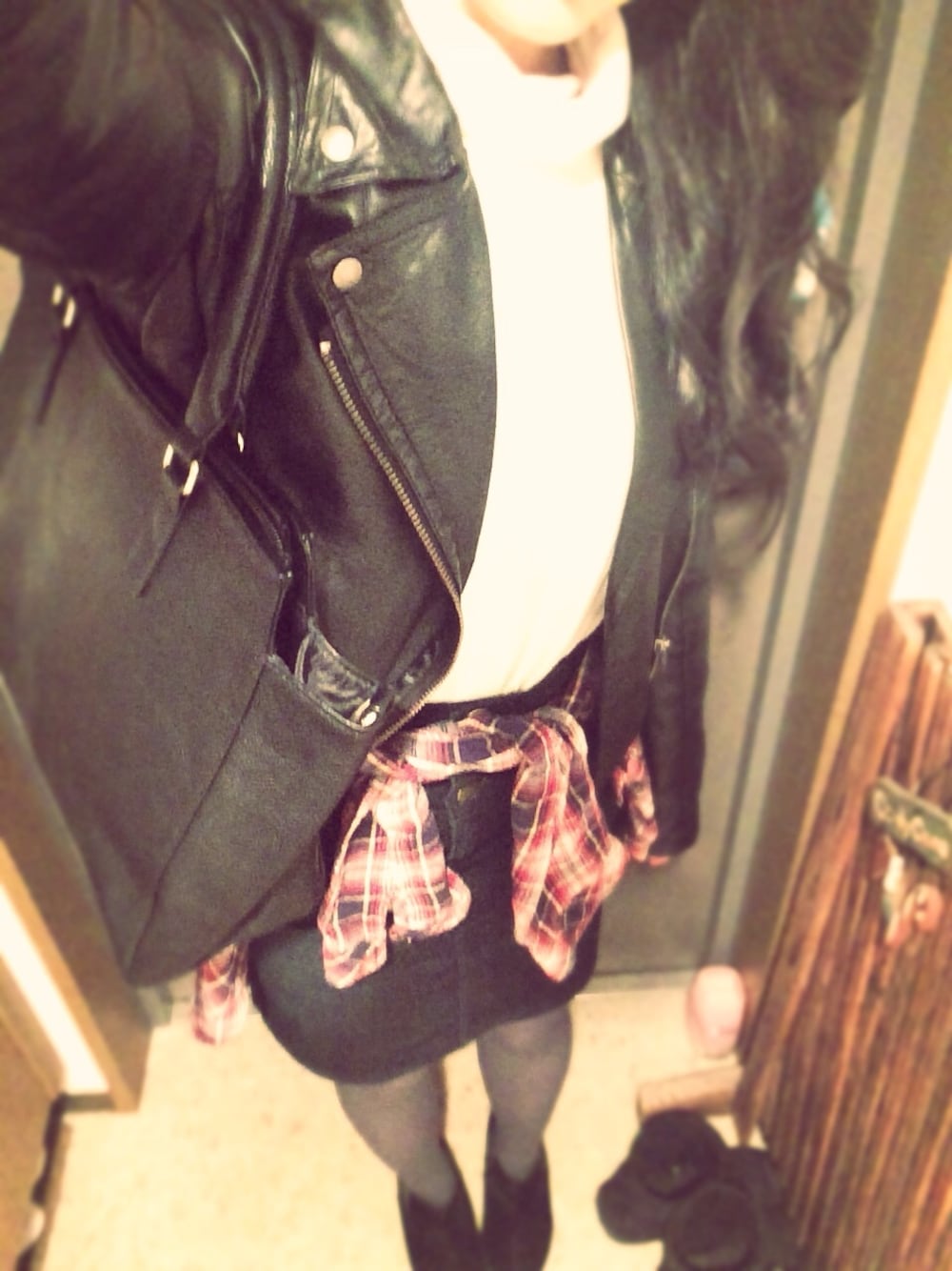 今日はロッカーな気分。 タイトスカート&ヒールで女を忘れずに。 タートルは母のを借りました(=゚ω゚)ノ これから母とGUへ!白デニムをゲットするのだ。