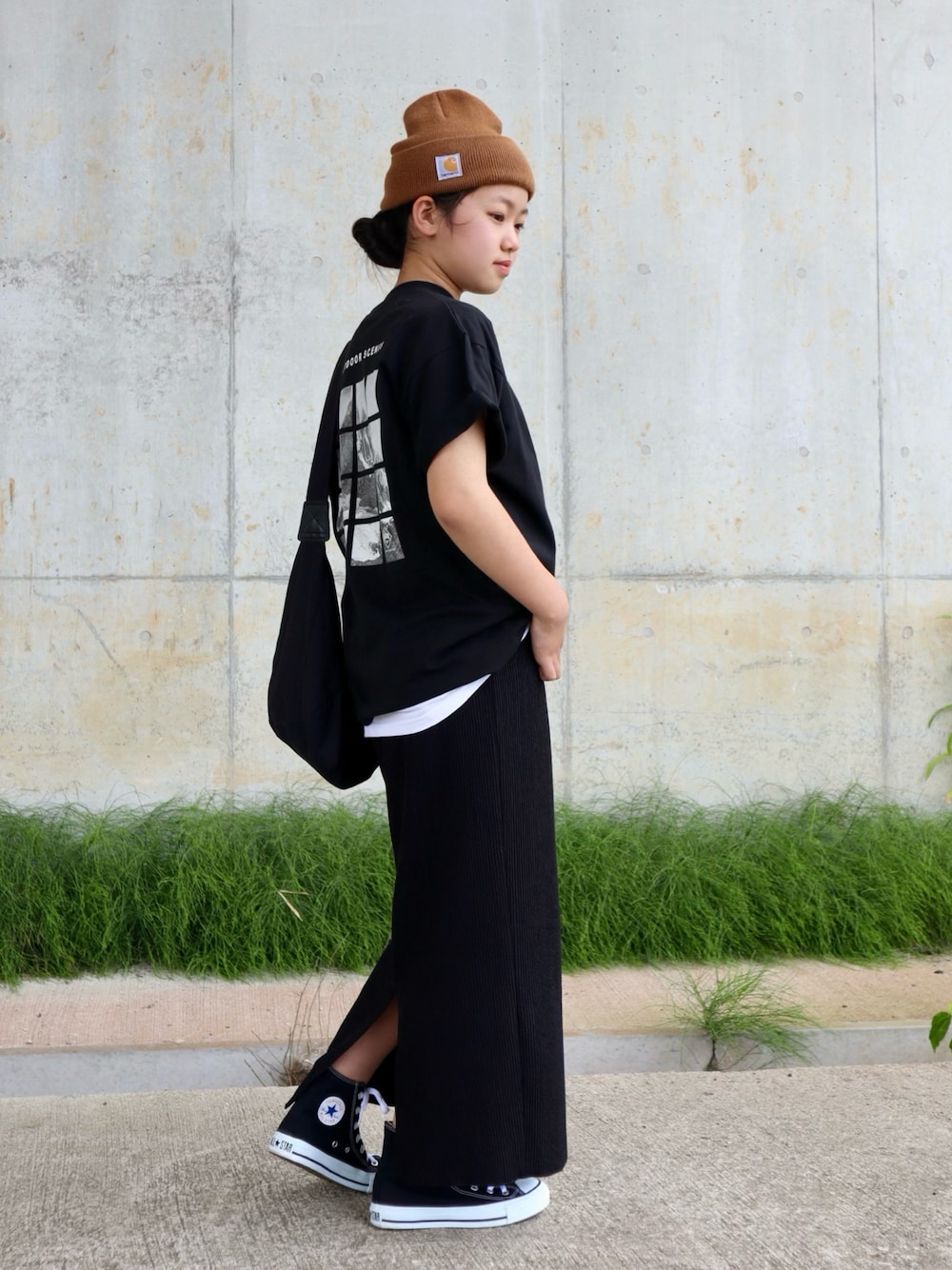 トップスsize:160 スカートsize:S 【身長148/体重40】 バックプリント。 後ろ姿かっこよくて好き♡ GLAZOSアンバサダー ・Penfield USAコットン・バックスクエアフォト半袖Tシャツ を着用させていただきました。 見ていただき、ありがとうございます♩