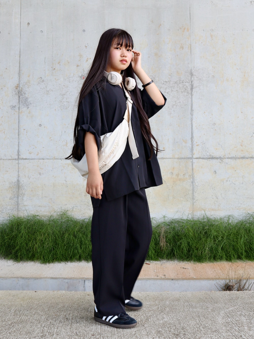 シャツsize:M パンツsize:XS 【身長148/体重40】 オープンカラーシャツ。 スラックス合わせてブラックコーデに。 見ていただき、ありがとうございます♩