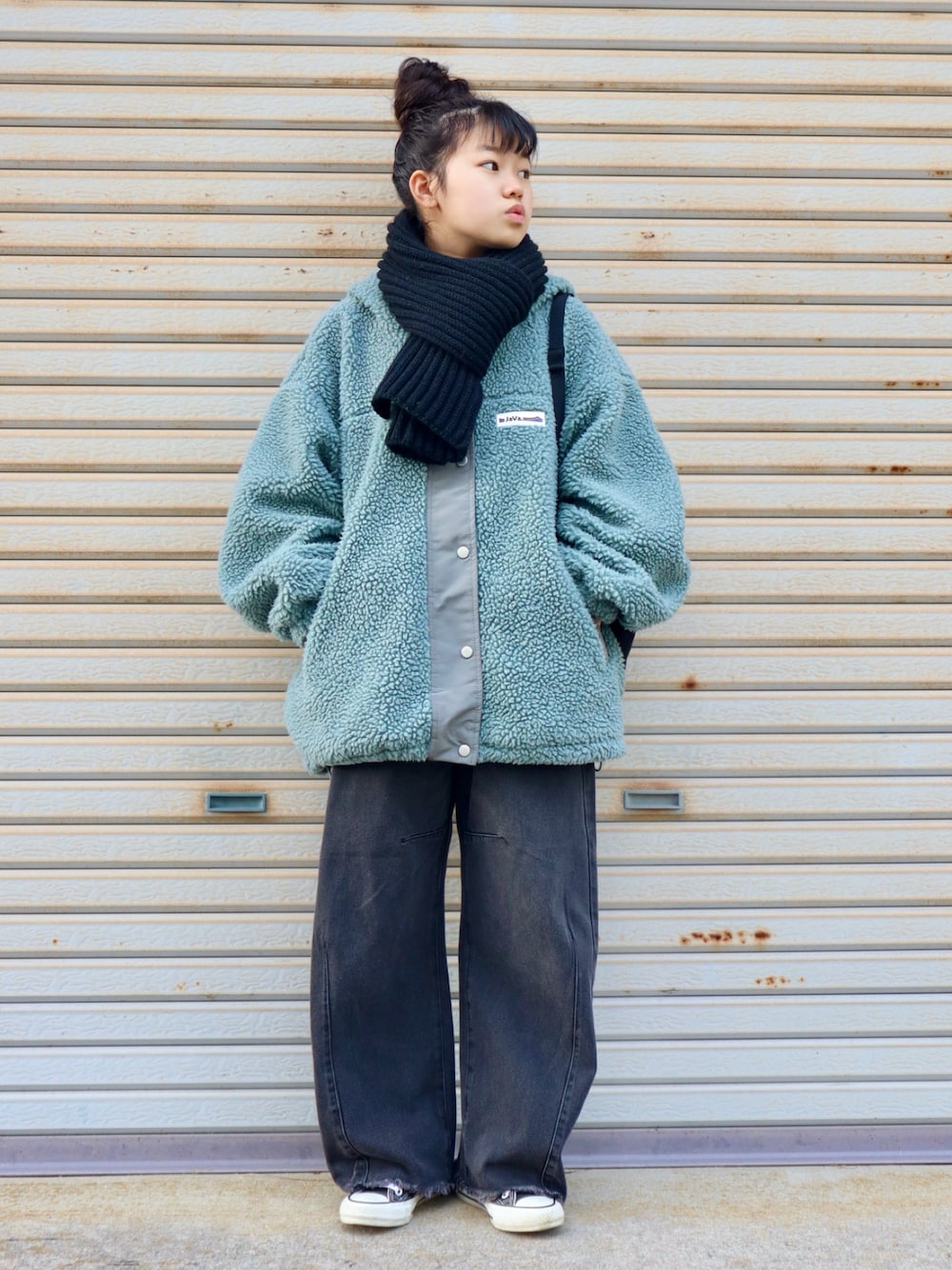 花音のブルゾン「《JaVaジャバコラボ》 レトロ スポーツで最旬コーデ。スタンド フード オーバーサイズ ボア アウター」を使ったコーディネート