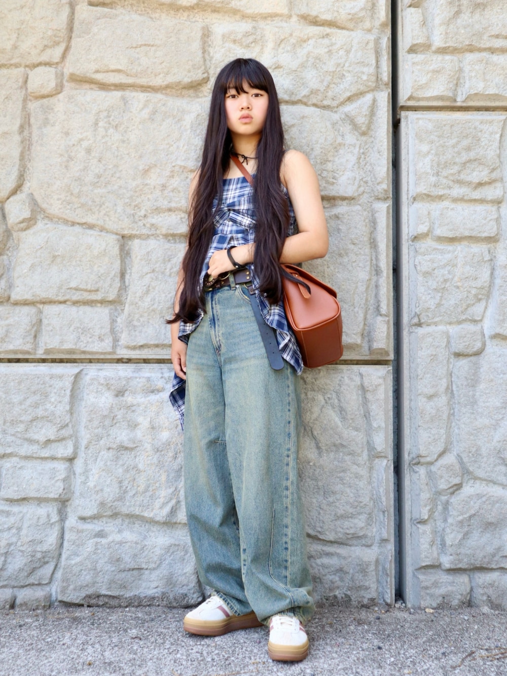 花音のキャミソール「チェック柄アシメフリルキャミソール」を使ったコーディネート