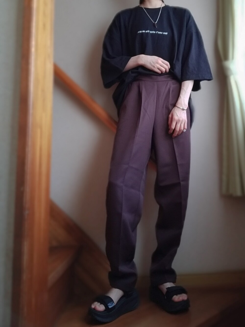 秋が待ち遠しいので秋色コーデをしてみました🍠🌰 スラックスを合わせるとロゴTもカジュアル過ぎずに着られるので良くやっちゃいます( ˙꒳˙ )