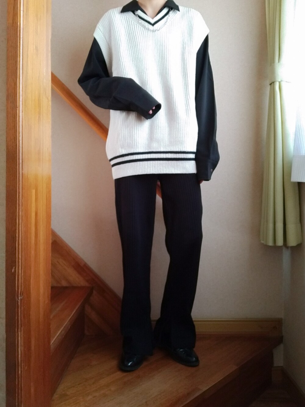 ベスト×シャツ×リブパンツでモノトーンコーデ🦓 いつも閲覧、いいね、お気に入りなどありがとうございます! このベストは春にUNIQLOで500円に値引きされていて思わず買ったものです🤭 たまにはシンプルなベストスタイルも◎