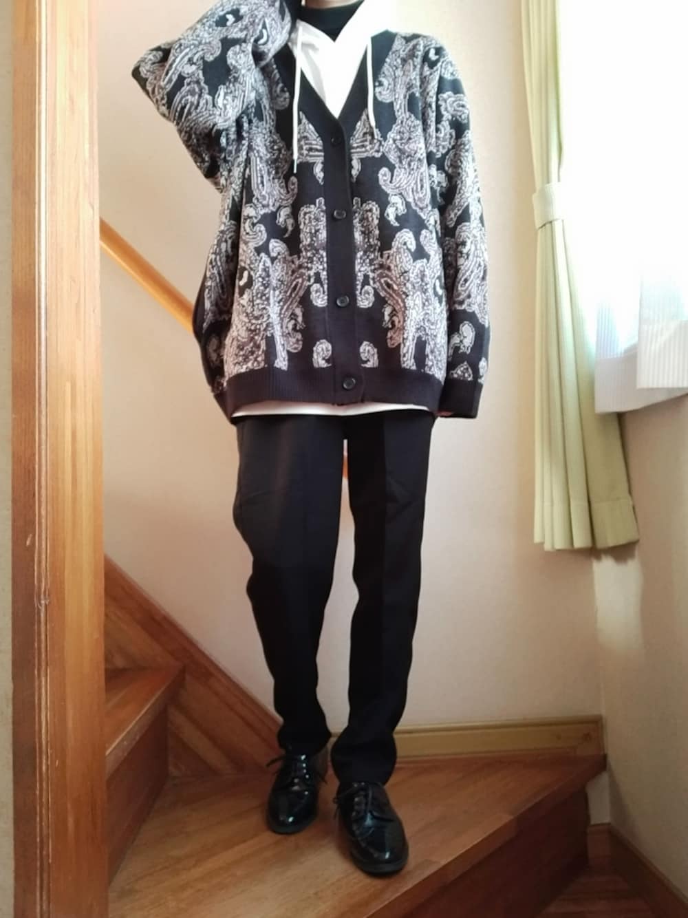 カーディガンでモノトーンコーデ🦓 いつも閲覧、いいね、お気に入り、フォローなどありがとうございます😊✨ 今日はカーディガン×パーカー×スラックスでモノトーンコーデをしてみました ペイズリー柄のカーディガンのおかげでシンプルだけど少し遊び心がある雰囲気になって可愛いです😎✨
