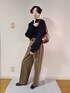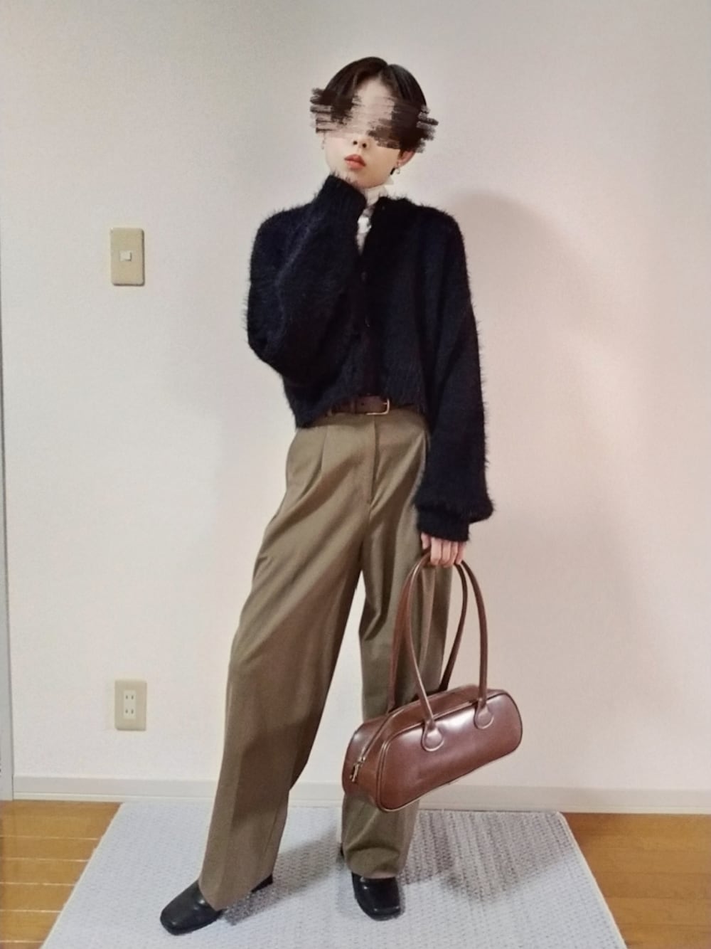 少しずつ秋めいてきましたね🤗✨ 私はまた髪をバッサリ短くしました! 今回はUNIQLOのタックワイドパンツ(56OLIVE)の着回しコーデ この絶妙なカーキ色が素敵で秋にぴったりです🍁🌰🍂 ブラックのカーディガンでシックにまとめました