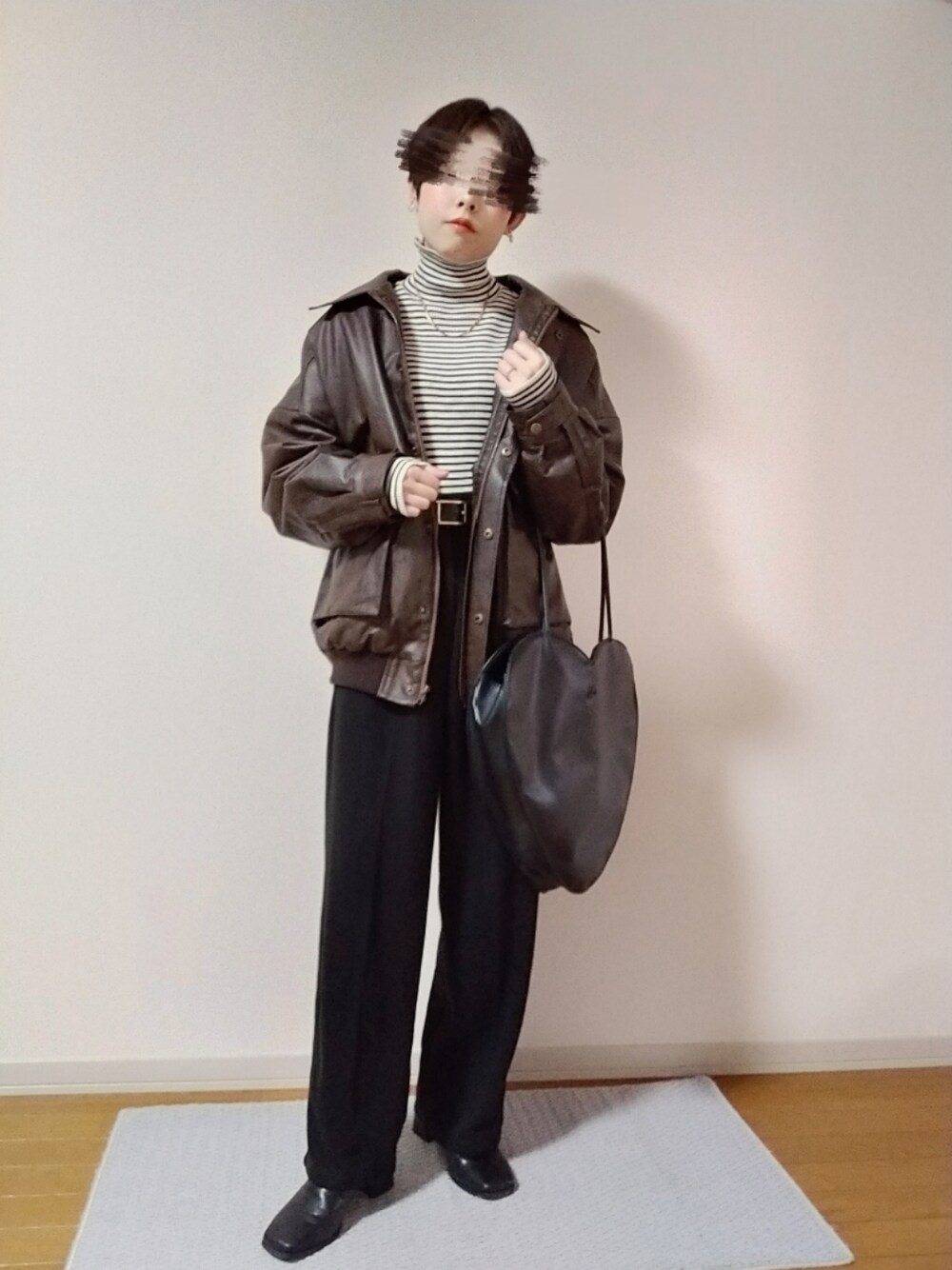 このブルゾンとても温かいです🤗 着込めば冬もいけます! タートルネックとストレートシルエットのスラックスで大人っぽくしました🦓