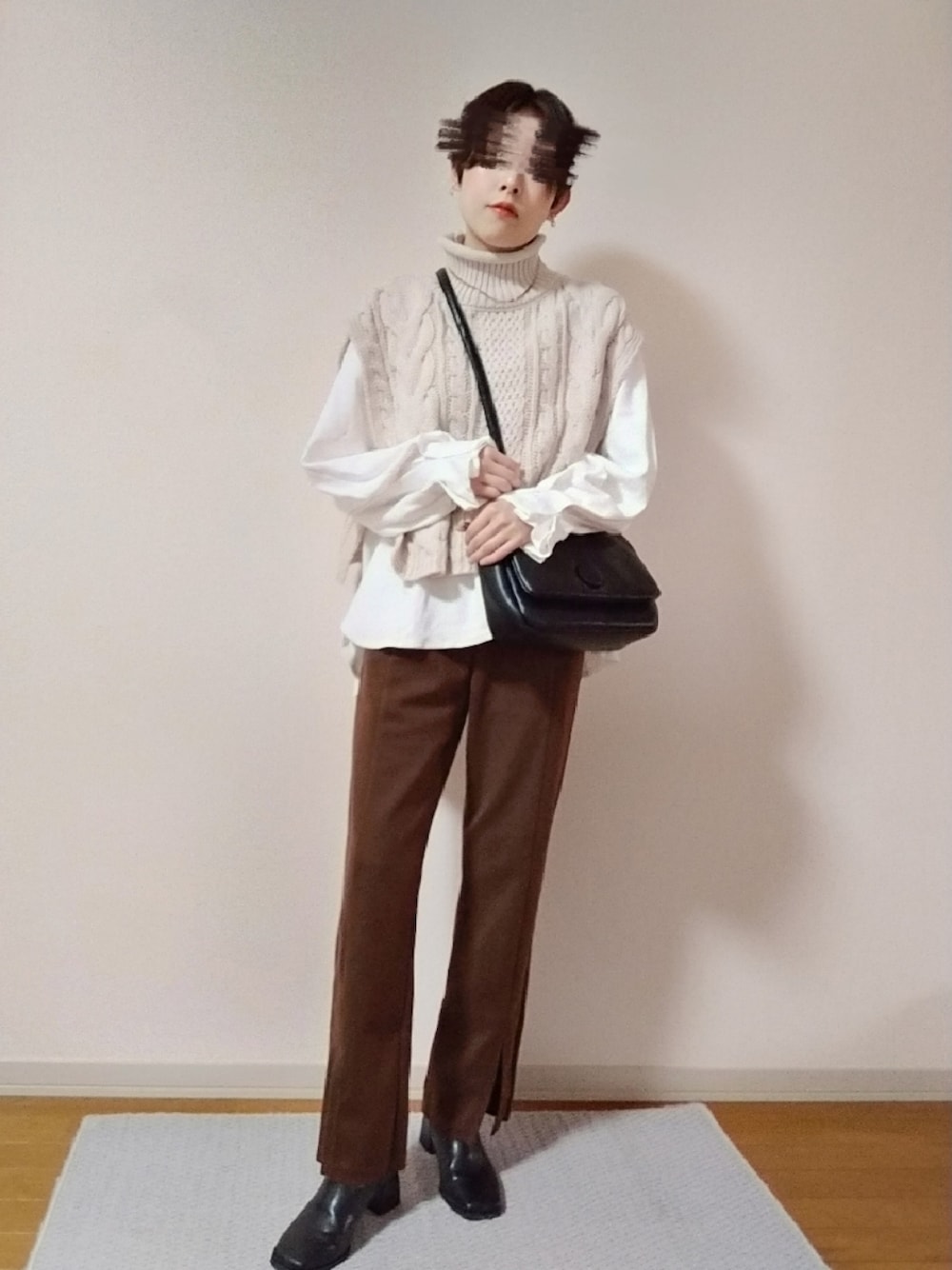 楽ちんだけどおしゃれに決まるコーデ ベストがタートルネックなのが推しポイントです👏