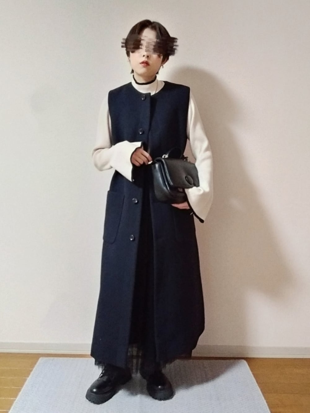先日GUで一目惚れして買ったネイビーのロングコートを使ったコーディネート🤗 ロングジレにもなるしスタンドカラーコートにもなる優れもの👏👏✨ 素材感も上品だしウエストマークですっきり着られるのもポイント高いです!
