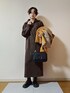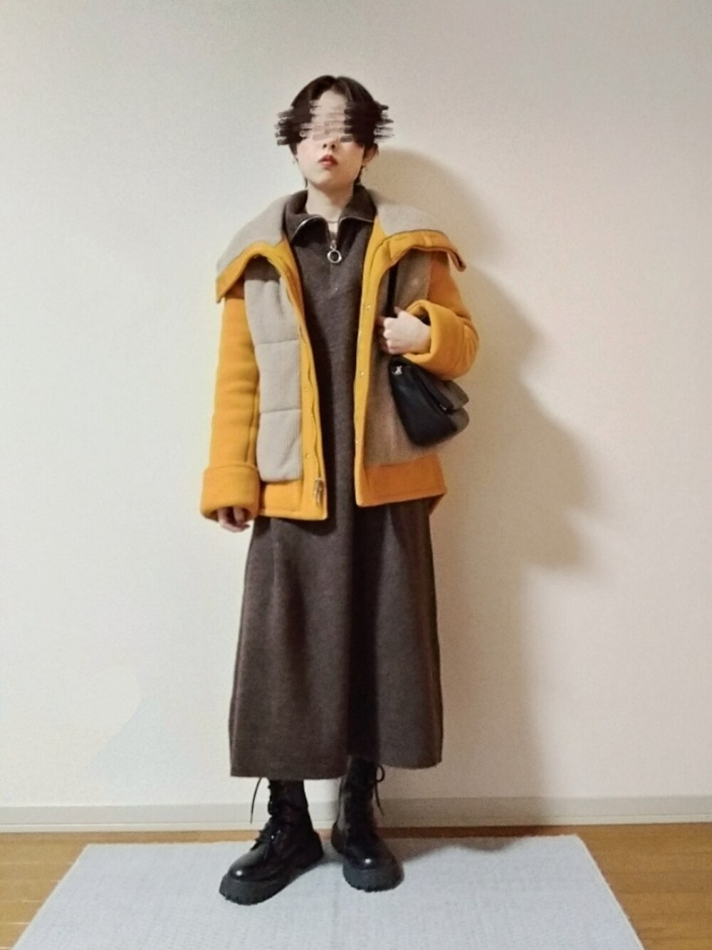 最近冷え込んできたのでソニアリキエルの主役急のアウターを使ったコーディネート 暖色系の服装にして秋らしさを出してみました🍁 紅葉を見に行くのも良さそう☺️ ワンピースはしまむらで生地感は薄めだけどアウターや小物合わせで上品に◎