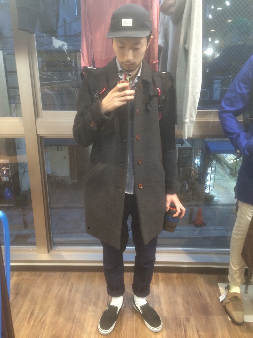 JIMMYのステンカラーコート「STUDIOUS BLUE 配色コクーンステンコート」を使ったコーディネート