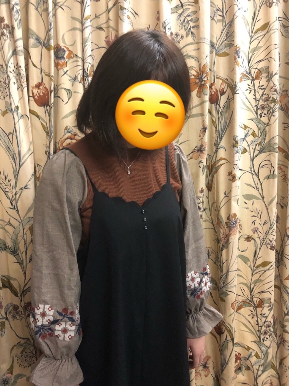 本日はPOU DOU DOU全身コーデ* 刺繍とくしゅっと袖、フロントがスカラップと可愛い要素てんこ盛り🎶 足元は、UNIQLOのグレーレギンスに、緑のヒール。 外出時は緑のトレンチコートで秋色たっぷり! ネックレスはpepeの誕生石入りのネックレスです