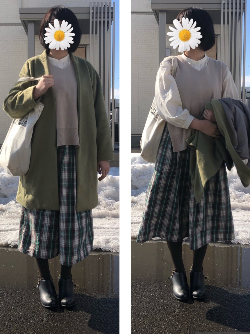 春ですね* 暖かくなってきたので 大好きな緑の色合いを柔らかいもの&少なめにしました ブラウス×ベストで春っぽさを* RETRO GIRLのベストはサイドがスリットでリボンが付いていてとても可愛い♡