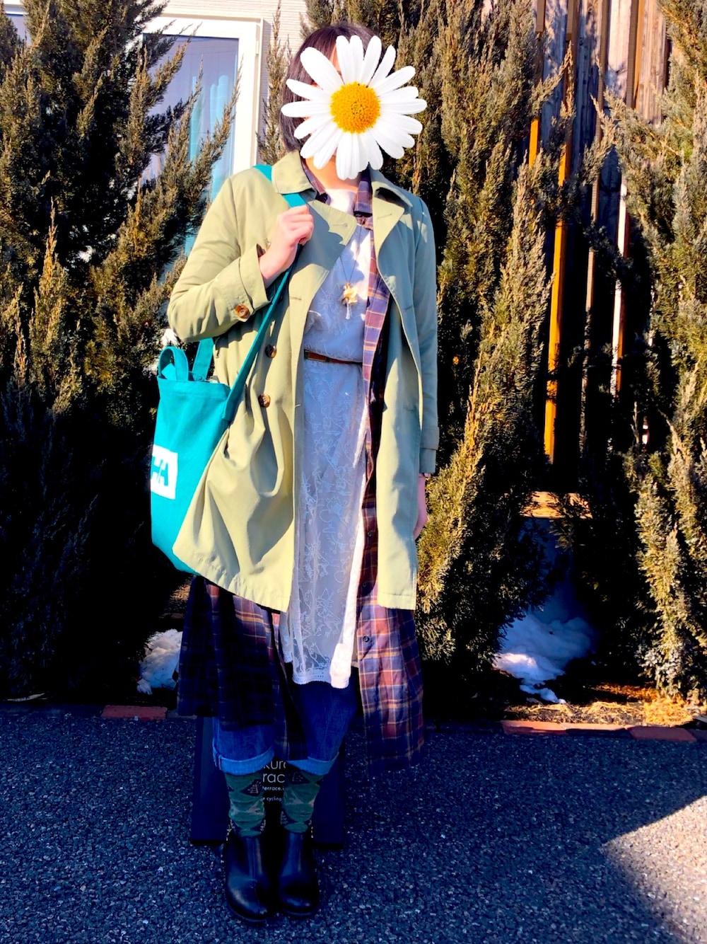 雪はまだまだ降るけど3月だから春気分🎶 見た目は春だけど、重ね着をして温かく