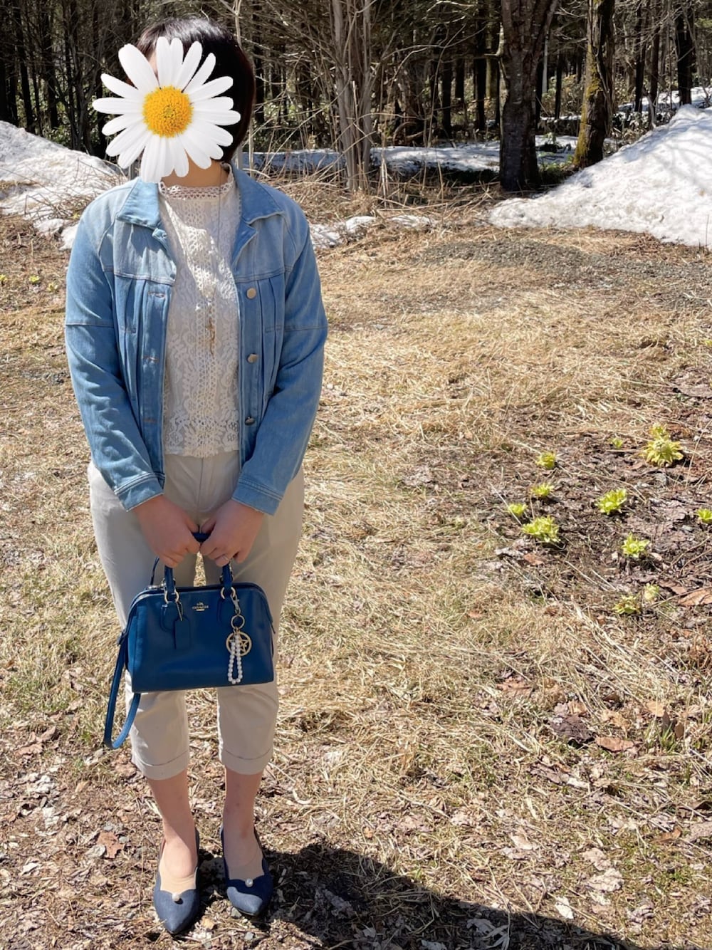 ブルー×ホワイト* デザインブラウスにデニムジャケットでカジュアルダウン