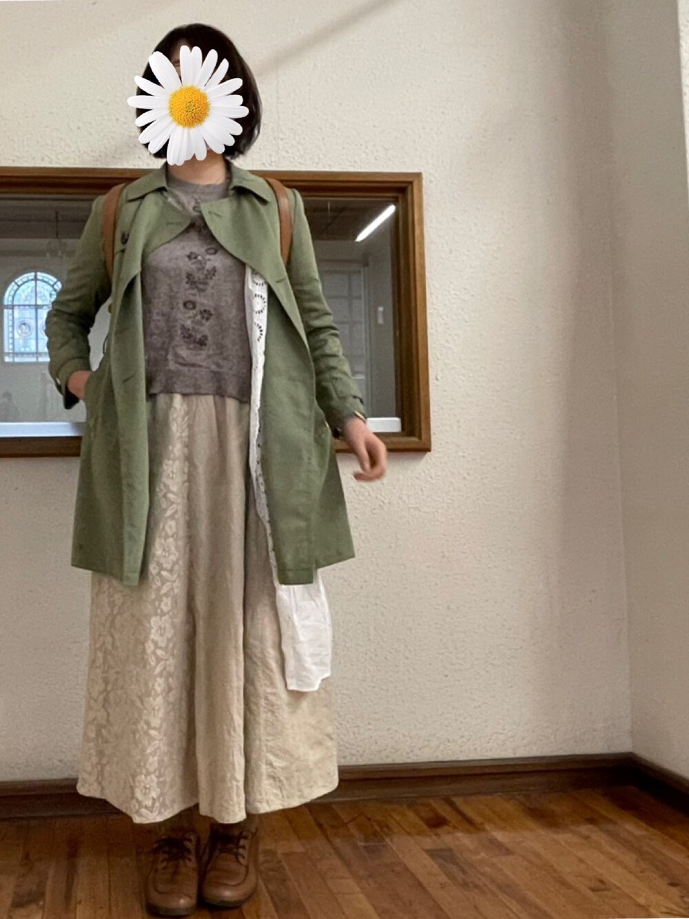 ほぼSM2コーデ* ナチュラルカラーでまとめました 春だけど、寒い地域に行くため暖かい格好で 白のカーディガン片側しか映ってない…笑