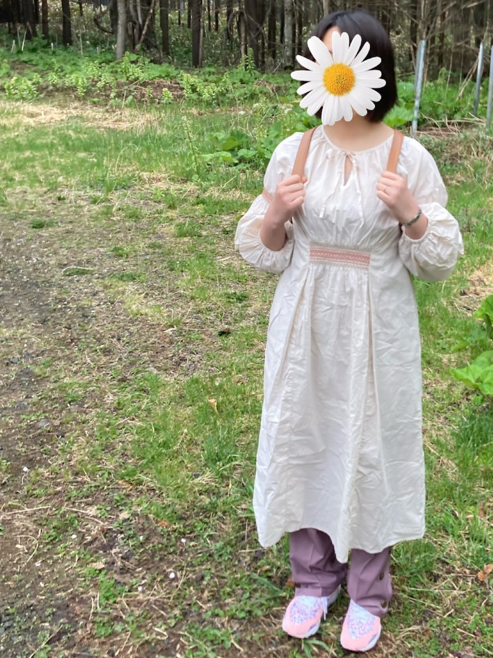 ワンピース×カラーパンツ ナチュラルカラーにアクセントとしてピンクを*