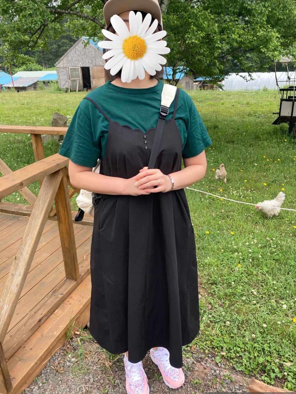 Tシャツ×スニーカーでアクティブに* 服が濃い色だから 靴、帽子、カバンは淡めに