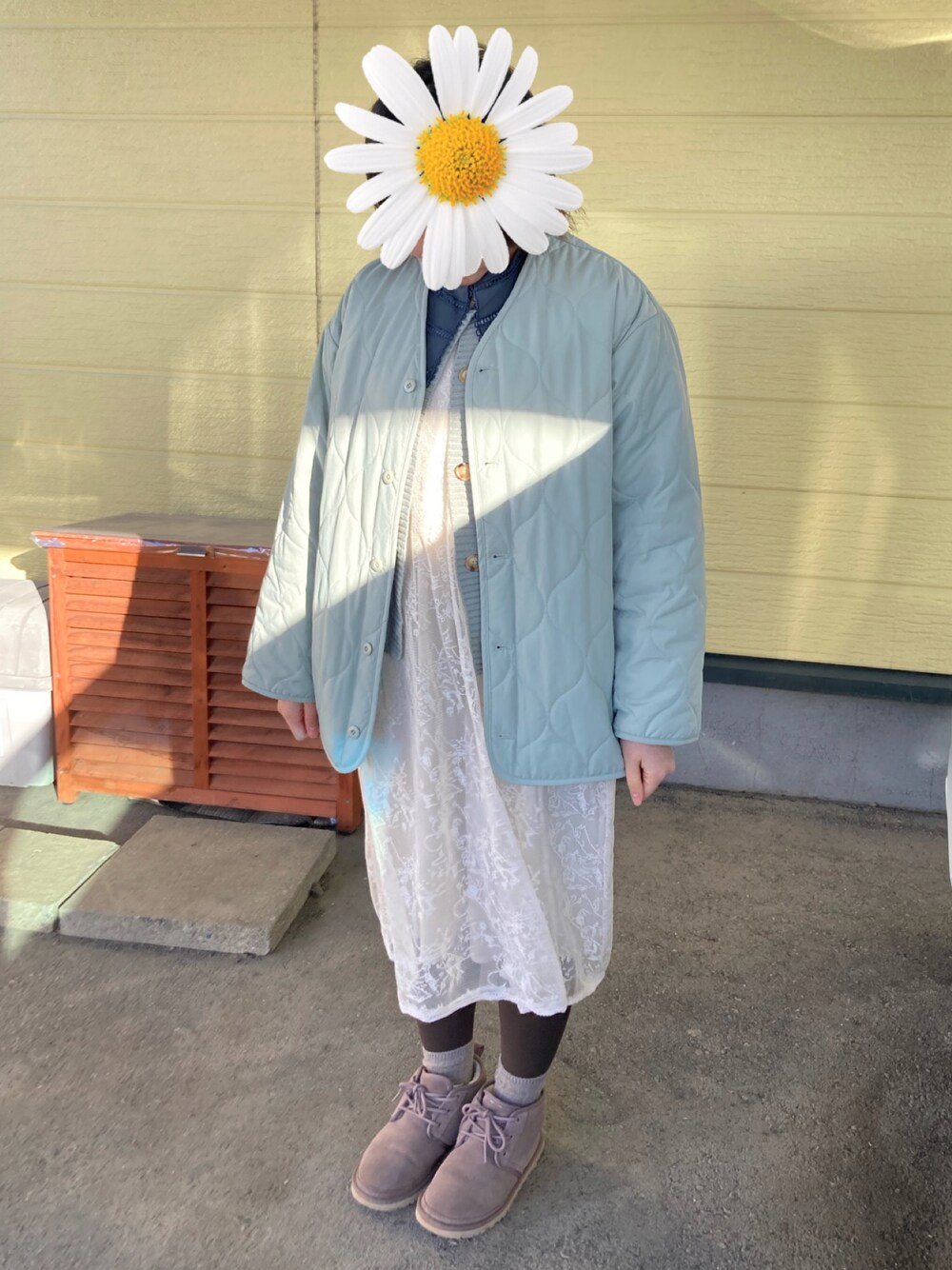 ミントグリーン* ブラウス、カーディガン、アウターが全てグリーン系で統一 ワンピースはアイボリーで タイツと靴下は茶色 全体的に強い色を使わず 優しい雰囲気に*