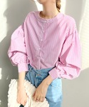 ゆうのシャツ/ブラウス「ストライプバルーンスリーブバンドカラーシャツブラウス」を使ったコーディネート