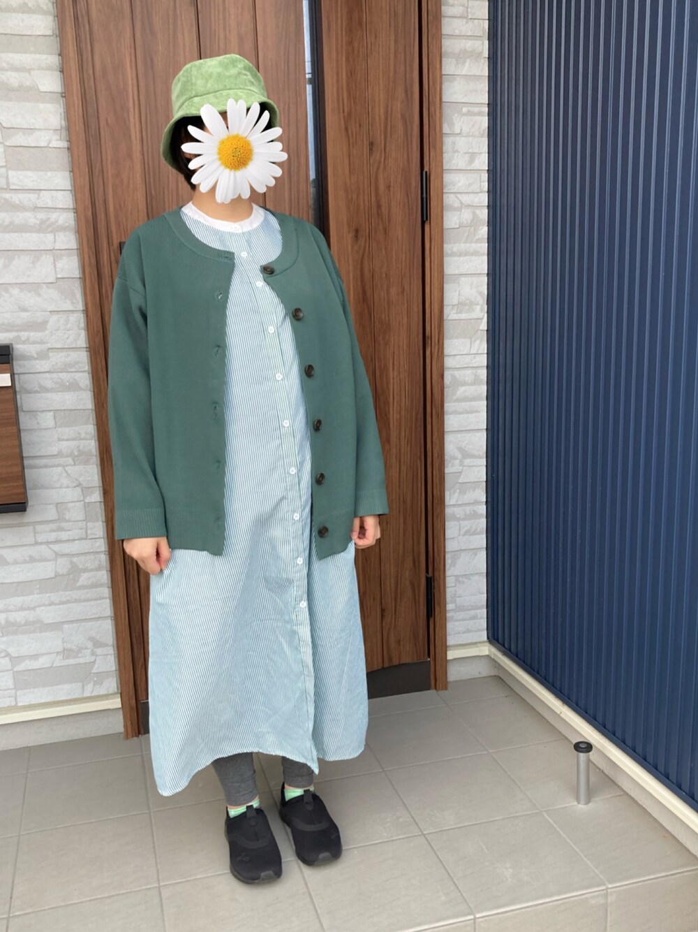 ゆうのシャツワンピース「バンドカラーストライプクレリックシャツワンピース」を使ったコーディネート