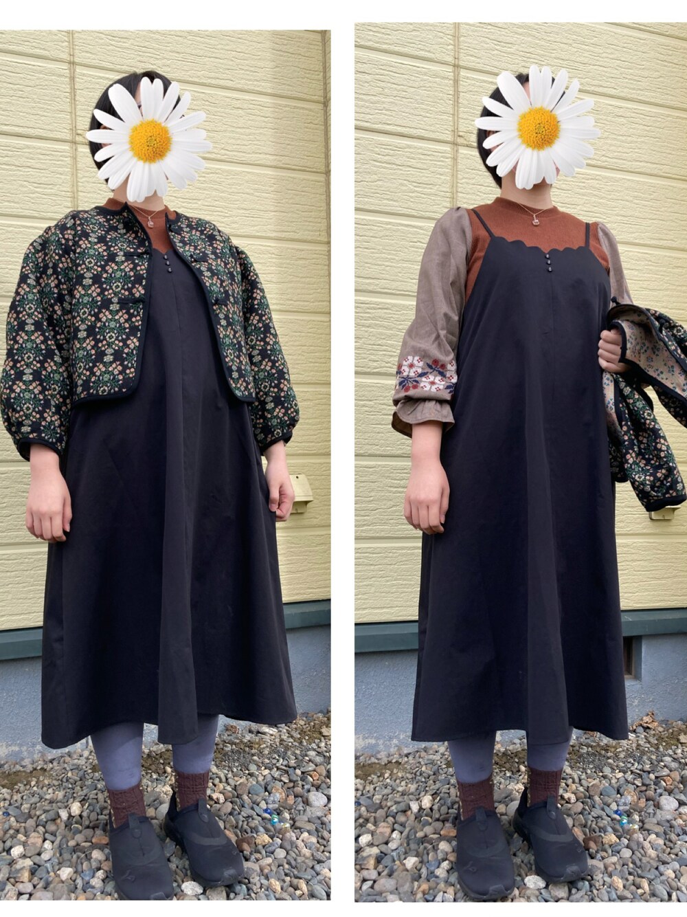 花柄コーデ* いたるところに花柄 主張しすぎないように、服の色味は抑えたものを* ジャケットを羽織っても可愛いし、 脱いでも袖口のギャザーが可愛い感じにしました