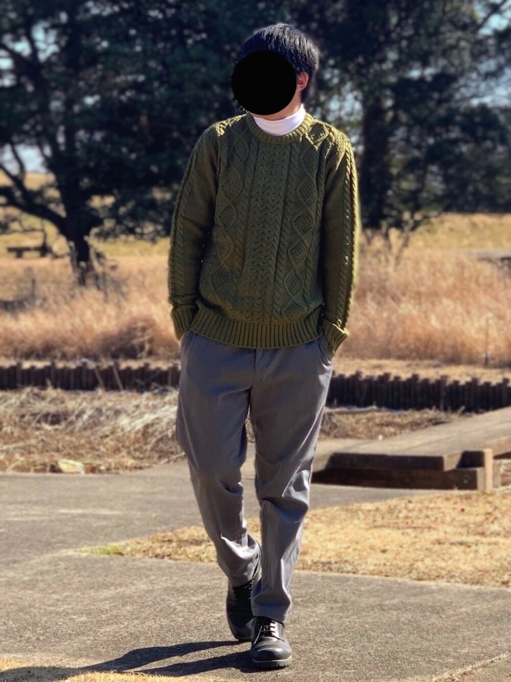 nnnのニット/セーター「クルーネックケーブルニットセーター【ローゲージニット】」を使ったコーディネート