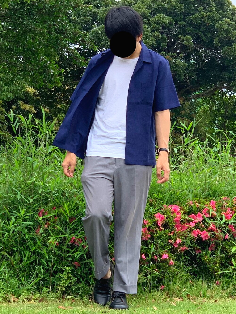 ネイビーシャツ×グレーパンツ🙂 いつもいいねやセーブなどありがとうございます!