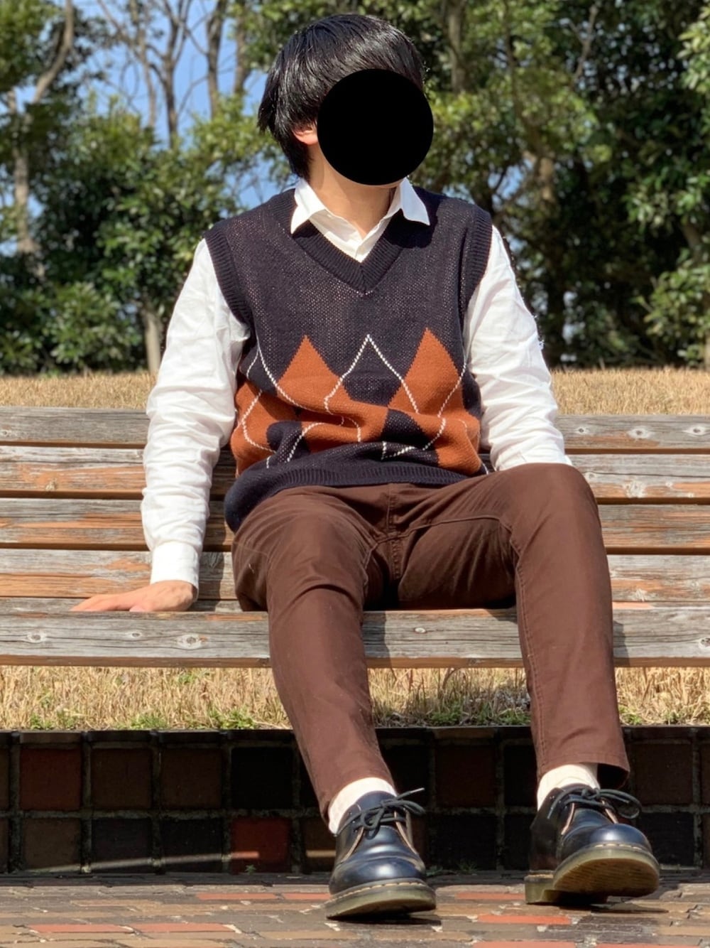 アーガイル柄のニットベストを使ったコーデ! いつもいいねやセーブなどありがとうございます☺️
