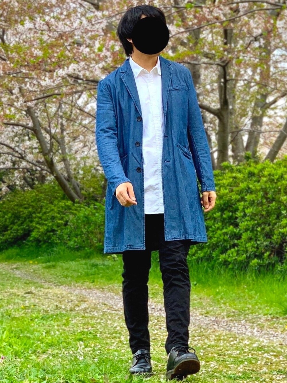 nnnのチェスターコート「デニムロング丈チェスターコート」を使ったコーディネート