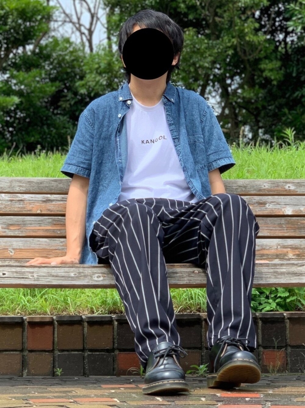 古着のデニムシャツ×ストライプのシェフパンツ! このシェフパンツの使い勝手は抜群です! いつもいいねやセーブなどありがとうございます😊 フォルダインも感謝です🙇♂️