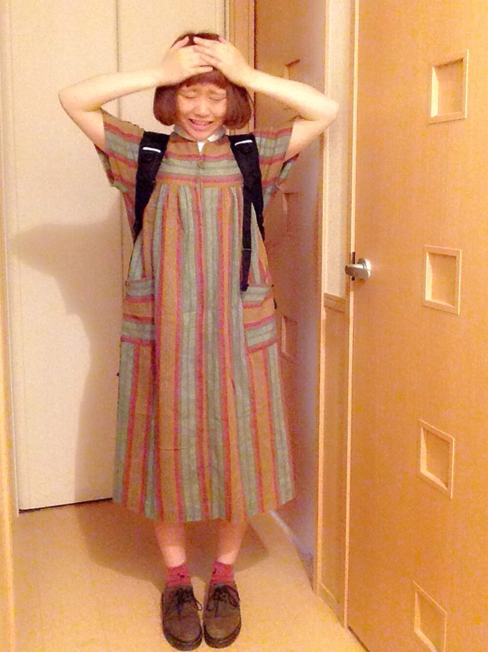 古着屋さんで買ったストライプのワンピース。淡い色でとってもお気に入り。 マーチンを合わせてレトロにしました♩ 外しでColemanの黒のリュック。 WEAR初めてだけどこれからたくさん載せられたらなぁと思います♩