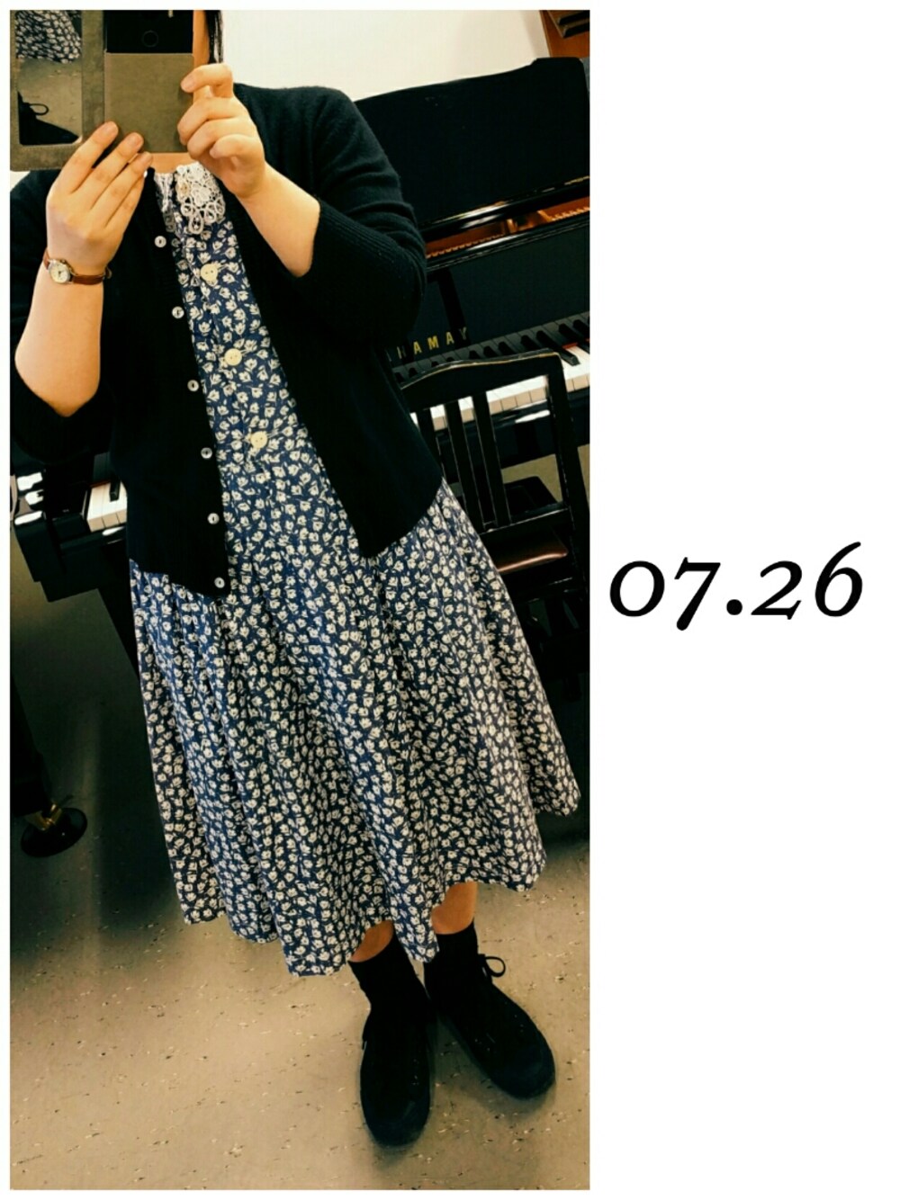 ブラック系のカーディガン/ボレロ、パープル系のワンピース、ブラック系のスニーカーを着用したレディースの夏コーディネートの1枚目の写真