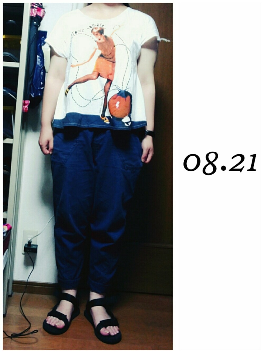 バイト行きますコーデ。 いかにもラフ。そしてラク。 トマトTいいかんじ。