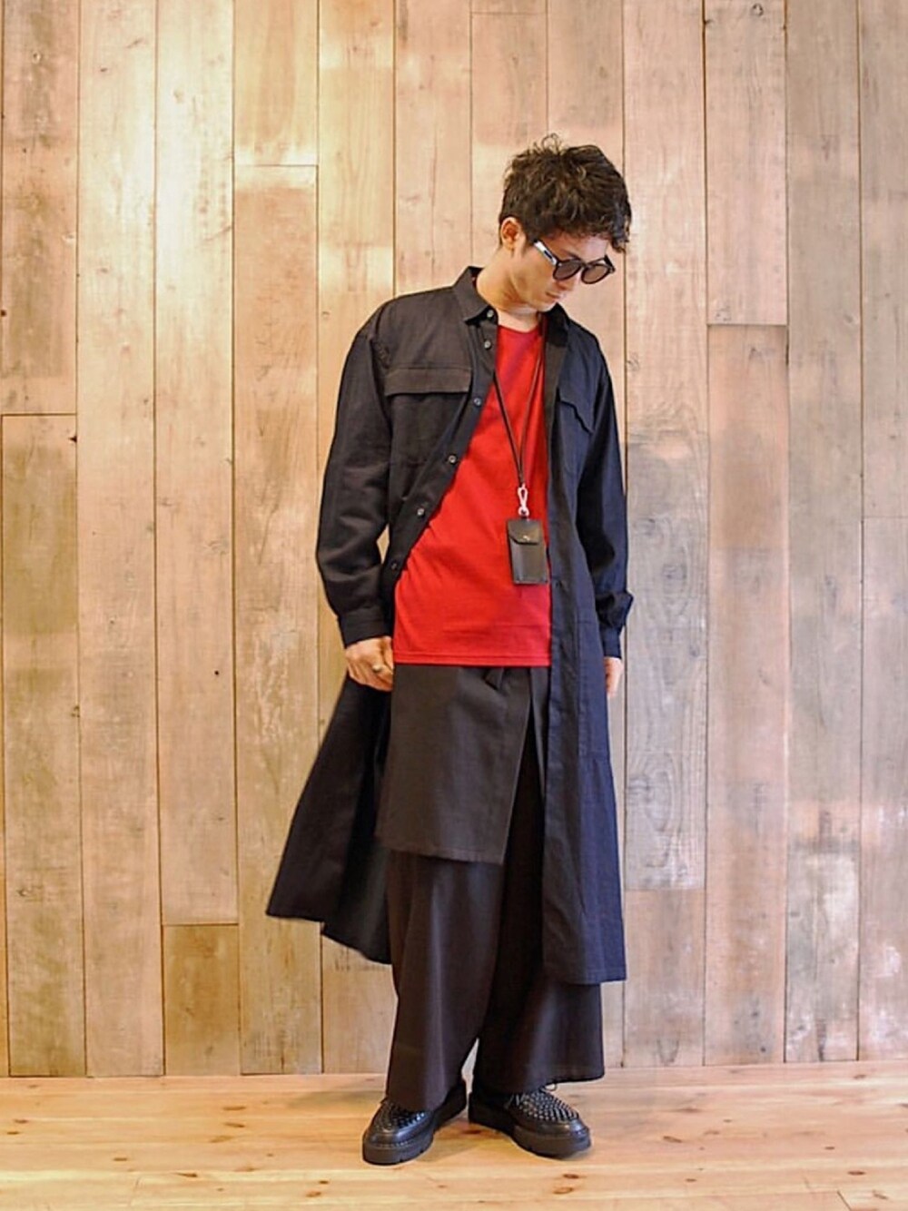 TKM style coordinate 011 全身ブラックコーデに 差し色の赤が映えるね