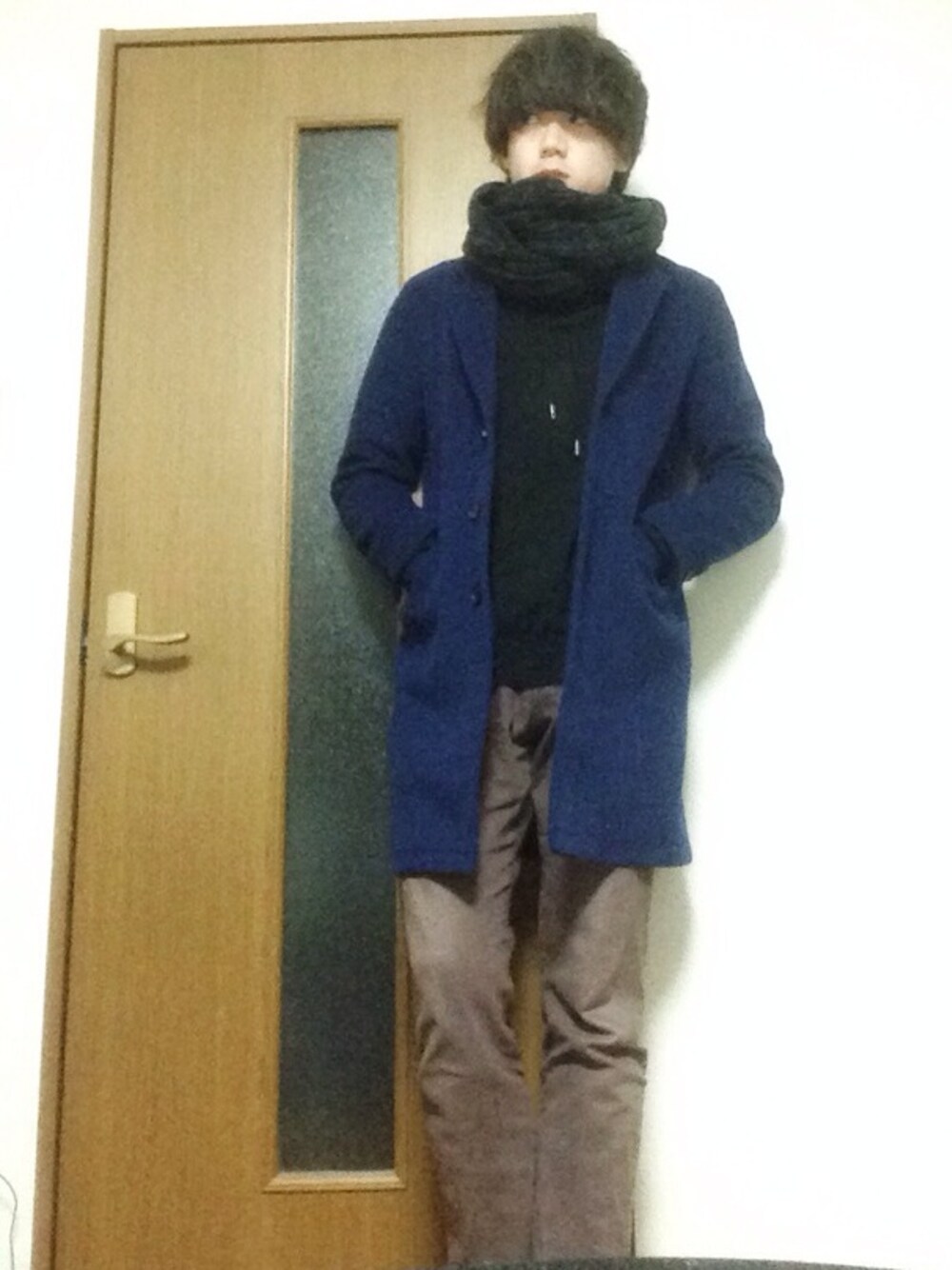 junpeiのチェスターコート「ウールメルトンチェスターコート(HARE)」を使ったコーディネート