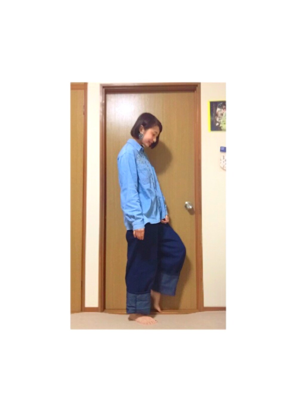デニムオンデニムーーーー!です! 今日はこのピアスが付けたくて💞 今日めっちゃ寒くないですか?! 夕方も雪降られました❄️ 寒いけど!たのしい!😁💥