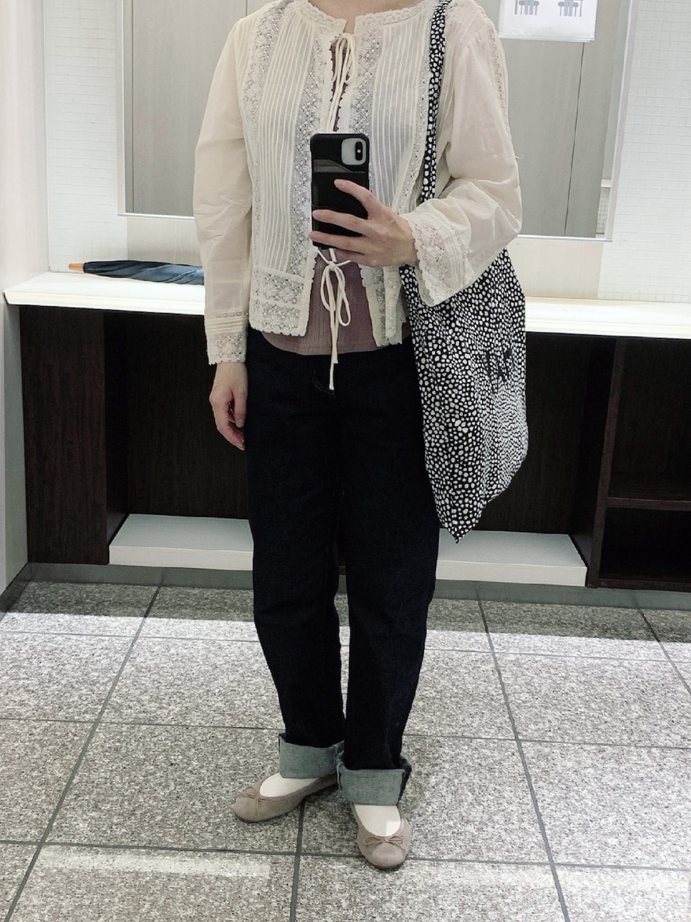 いいね ありがとうございます ⚮̈ 久しぶりにお気に入りブラウスと バレエシューズ 🩰