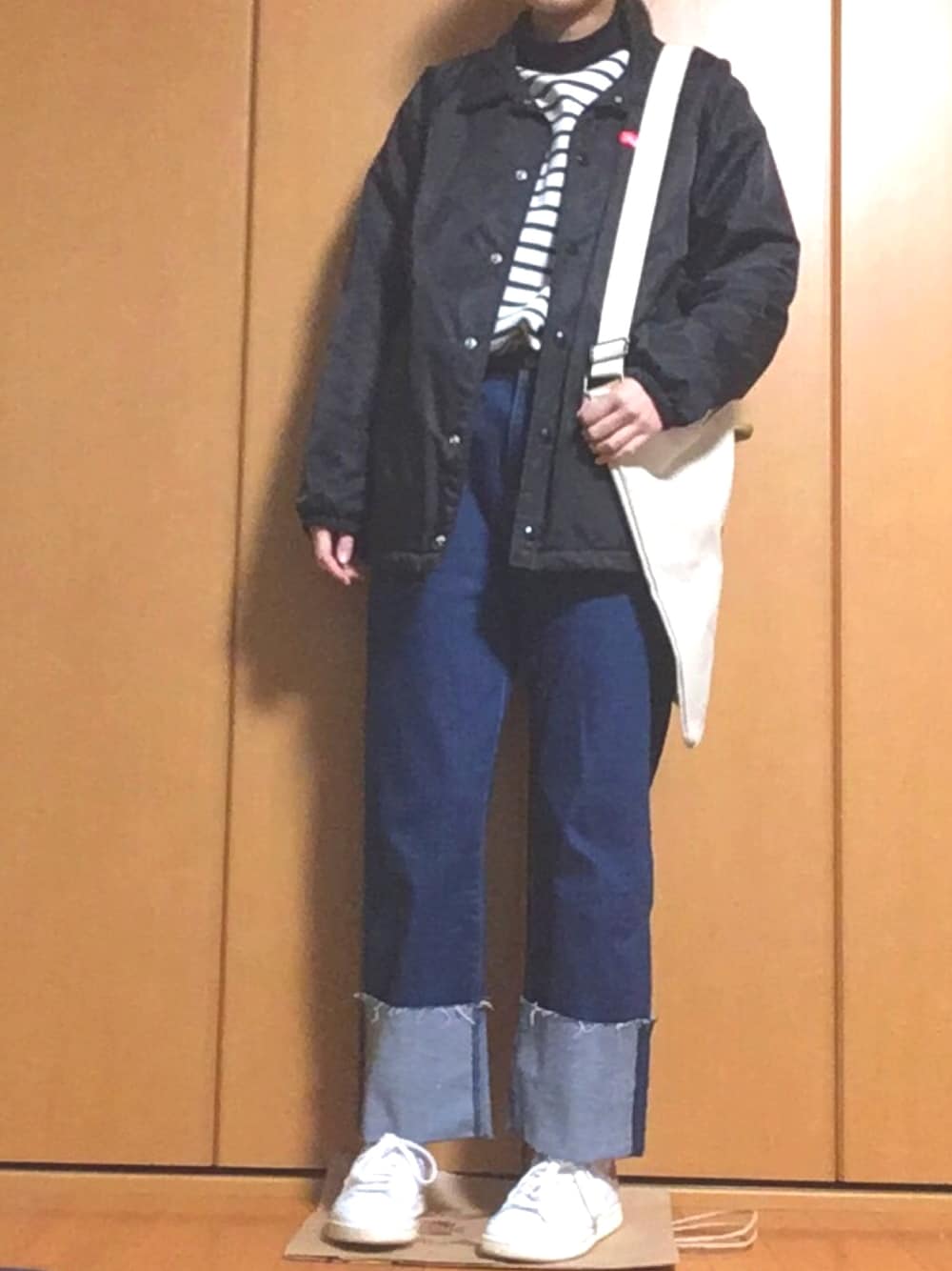 何かモコモコ感、、、 トップスのサイズメンズだから 大きくていいんだけど、上着きるとモコモコする、、笑 このカバンは付録です😎 Leeのマークが見えてない、、笑