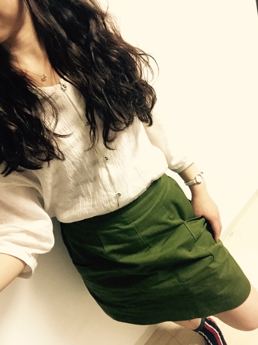 はじめて!今日はSALEのカーキスカート! 明日は暖かかくなればいーなー