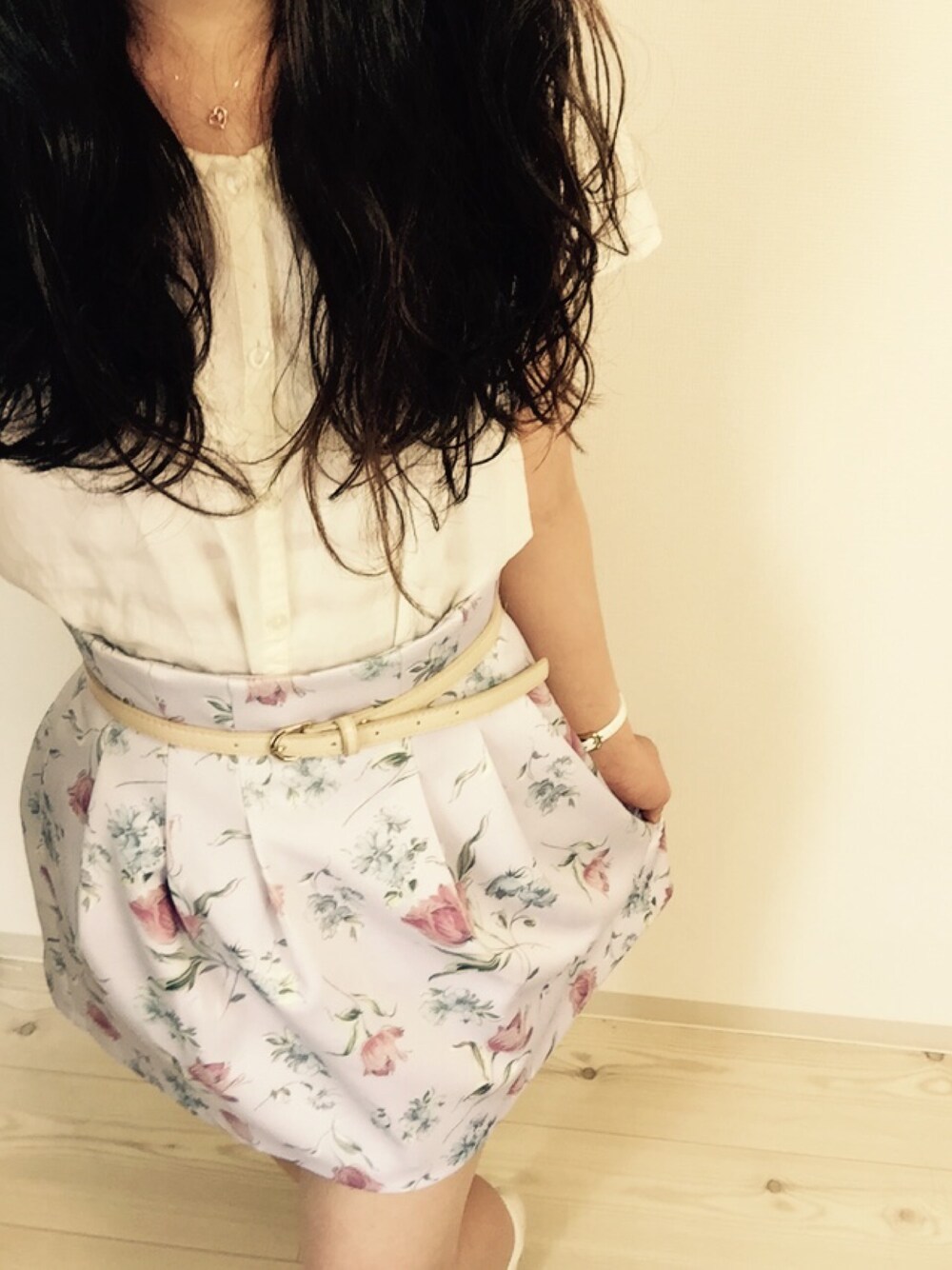きゅんのスカート「チューリップ柄コクーンミニスカート②」を使ったコーディネート