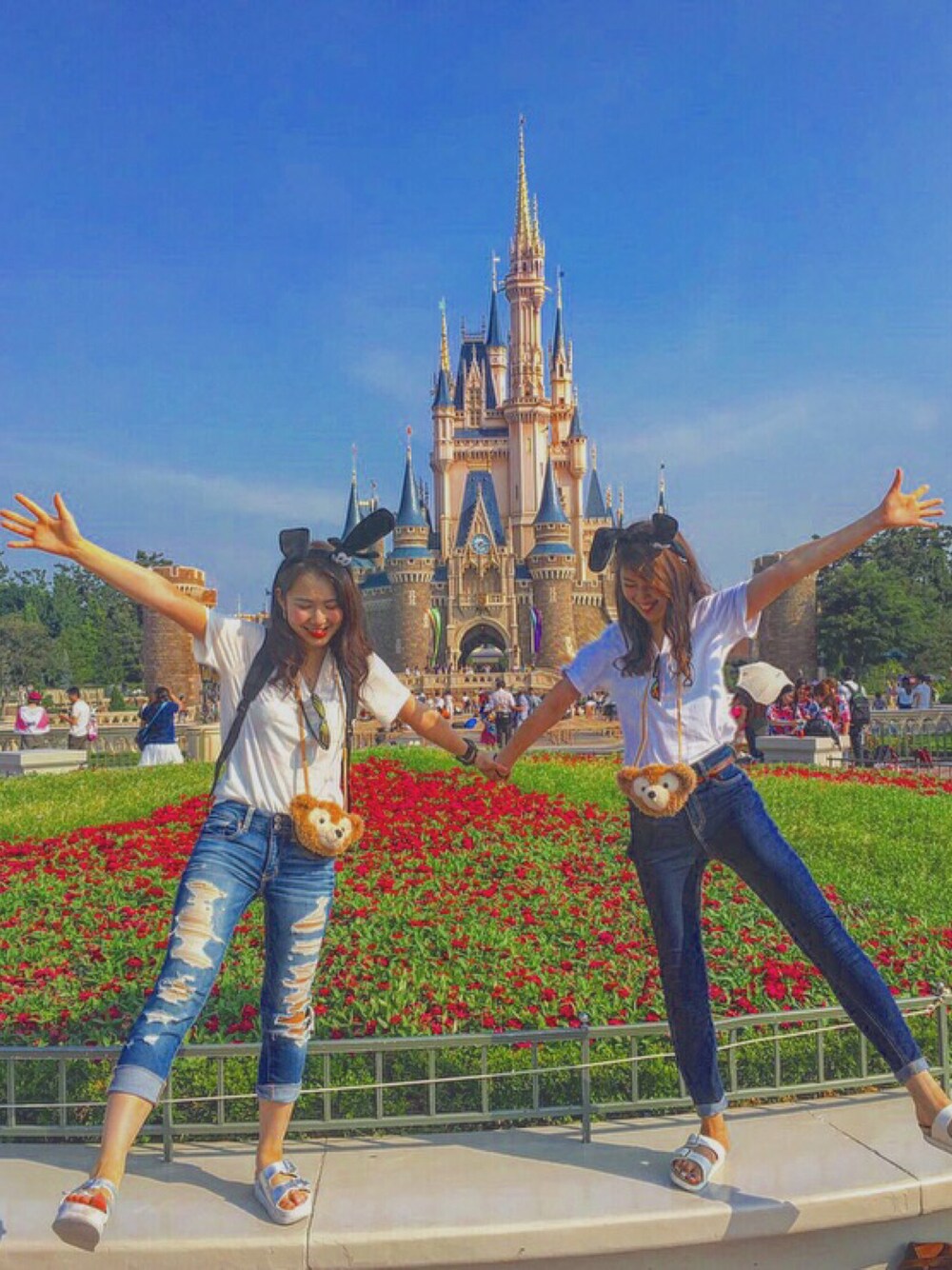 久しぶりに友達と弾丸ディズニー なんちゃって双子コーデ🌻🌻