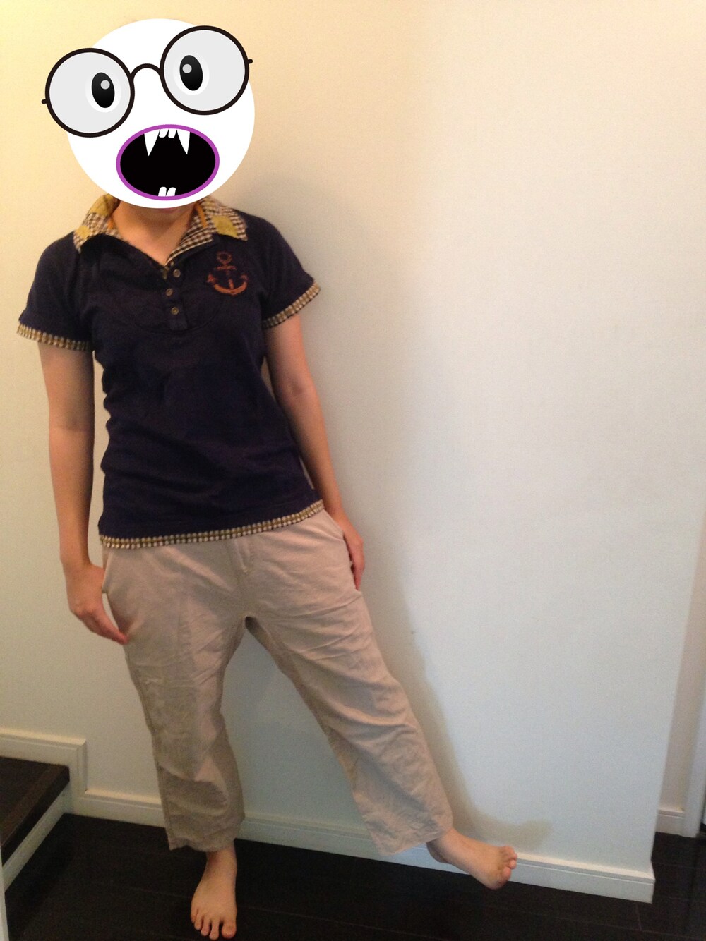 Kamiumeのポロシャツ「(D10588)チェックにそえてW衿ポロ」を使ったコーディネート