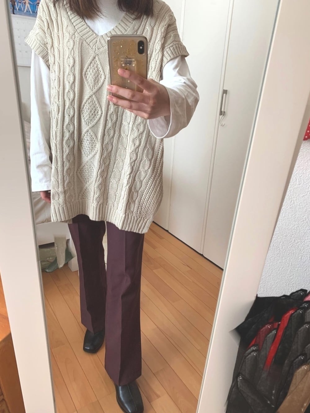 くらげのベスト「ケーブルニットベスト」を使ったコーディネート