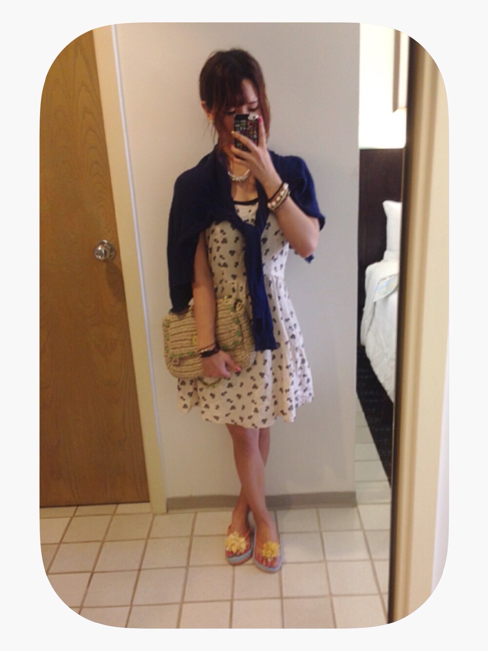 hawaii part2 🌺✨✨ ワンピースにビーチサンダルで楽チン😇 バッグがかなりお気に入りなんです ♩♩ 朝晩は少し冷え込むので、 肩からカーディガンを羽織って。