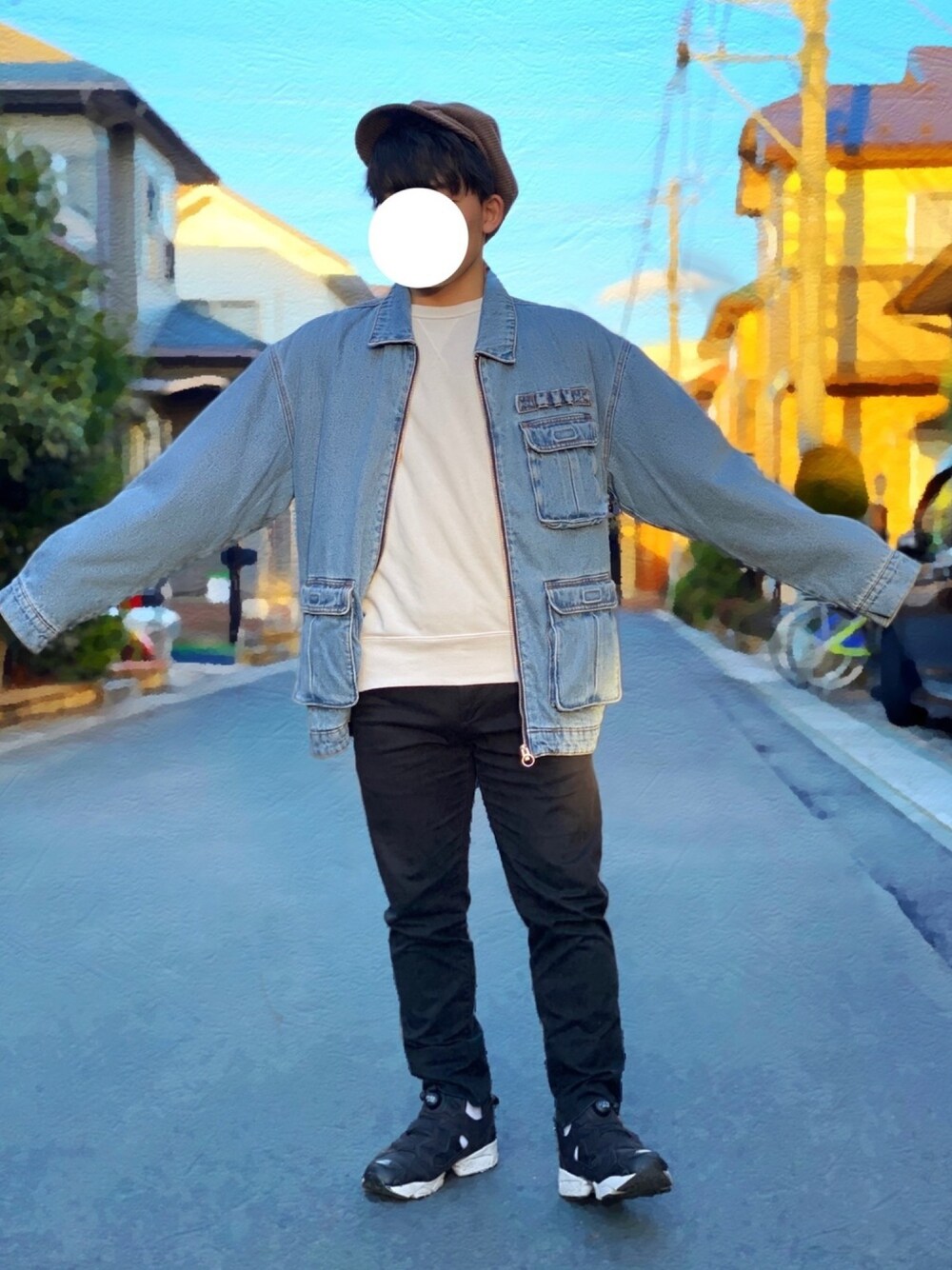 みなさんこんにちは☀ 昨日今日と暖かい気候が続いていてとても過ごしやすいですね! ってわけで少し春っぽい格好にしてみました! シンプルな白と黒のトップスパンツにオーバーサイズのデニムジャケットを合わせて低身長ならではのデニムでも親しみやすい格好になっているのではないですか?? 帽子は最近お気に入りのvisの帽子をつけさせて頂いています! もしよかったら参考?になればいいと思います! 貴重なお時間閲覧に割いていただきありがとうございます(o_ _)o