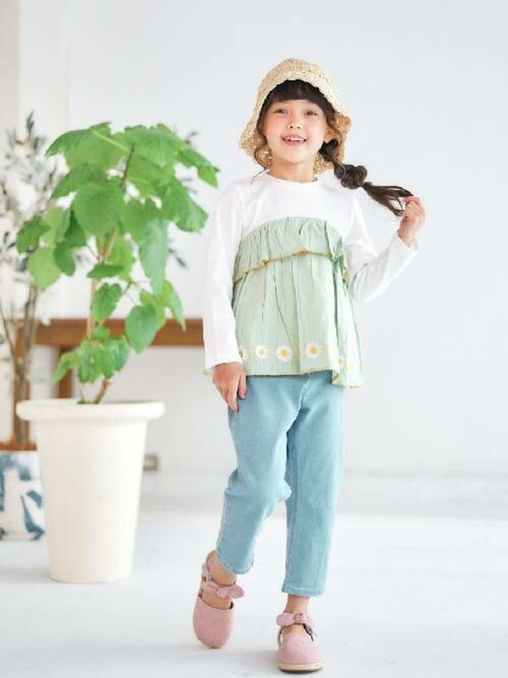 F.O.OnlineStore(F.O.Online Store)のTシャツ/カットソー「アデリアレトロ 3柄刺繍ドッキングTシャツ」を使ったコーディネート